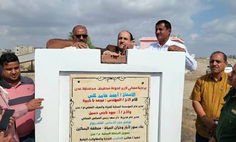 ويعد هذا المشروع الذي بلغت تكلفته حوالي ( 141,456,023 ) ريال يمني، بتمويل من السلطة المحلية بالعاصمة عدن ، وتنفيذ ( مكتب الخضيري للتجارة والمقاولات العامة ) واشراف من المهندس التابع لمكتب الاشغال العامة والطرق بالمديرية/ أمجد عوض ، لتسوير ثلاثة من مواقع آبار مياه متفرقه مع ملحقاتها من منظومة طاقة شمسية وغرف تحكم ومولد كهربائي بمنطقة بئر فضل غرب المديرية، وتسوير الخزان البرجي وعزلة عن حرم مدرسة البساتين مع بناء 2 غرف بجانب الخزان، على ان تخصص هذا الغرف لأعمال الفريق الإداري التابع للمؤسسة العامة للمياه والصرف الصحي، من المشاريع الهامة التي ستعالج كثير من المشاكل المتعلقة بالانقطات المتكررة للمياه وتحسين أداء الخدمة لمنطقة البساتين والمناطق المجاورة لها.