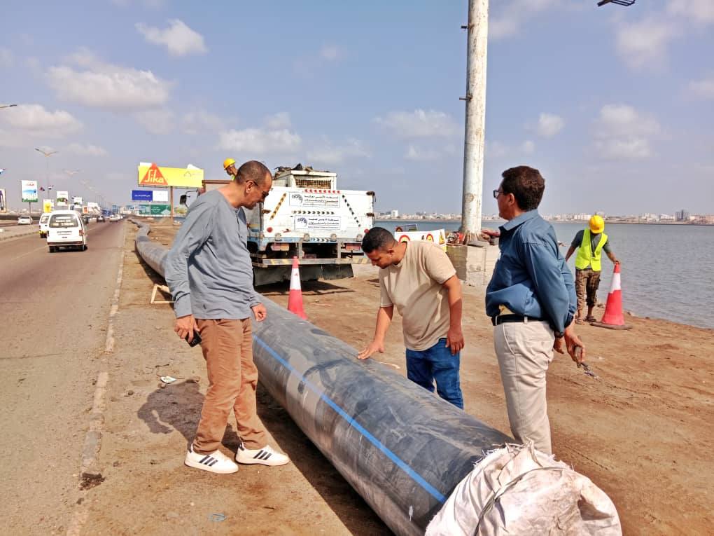 تفقد مدير عام المؤسسة المحلية للمياه والصرف الصحي بمحافظة عدن، المهندس محمد باخبيرة، اليوم الإثنين، سير العمل في مشروع إعادة تأهيل أجزاء من خط الضخ الرئيسي في الخط البحري القادم من بئر أحمد، والذي يجري تنفيذه بتمويل من منظمة تراينجل الإنسانية، بالشراكة مع المؤسسة، وبإشراف وتنفيذ مؤسسة أحمد بانافع للمقاولات والخدمات.