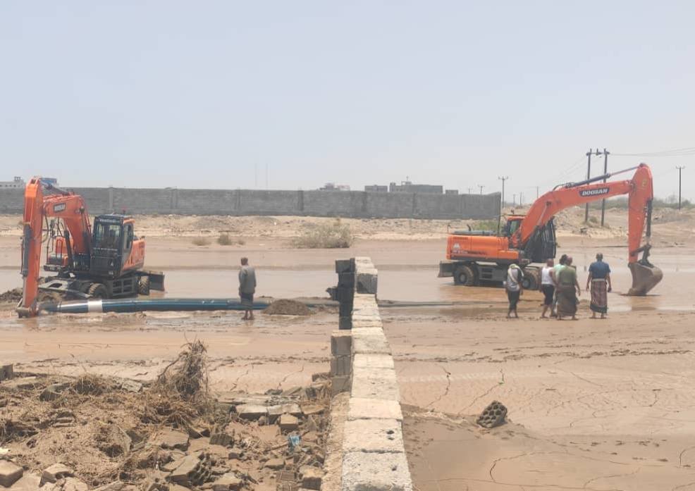 تفقد مدير عام المؤسسة المحلية للمياه والصرف الصحي بمحافظة عدن المهندس محمد باخبيرة، اليوم، أعمال إصلاح الخط الرئيسي الناقل للمياه بقطر 24 بوصة القادم من حقل بئر أحمد، عقب تضرره جراء السيول الجارفة في منطقة الحسوة.